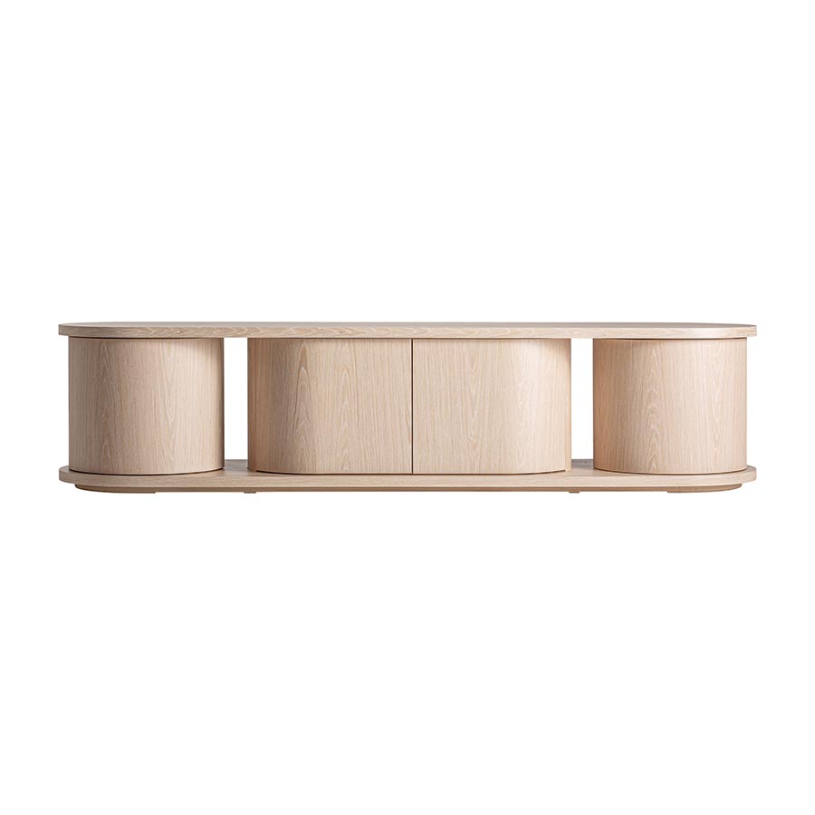 Mueble tv Kharj de estilo art deco fabricado en madera roble en color beige.