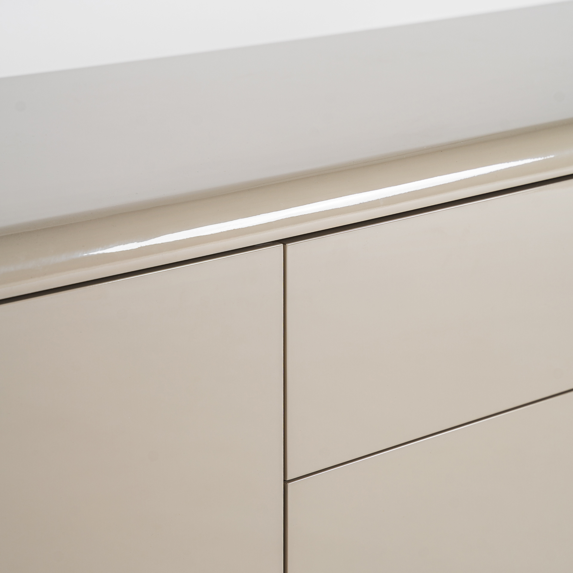 Mueble tv Zorbig de estilo contemporáneo fabricado en madera dm en color crema combinado con melamina en color crema. Producto desmontable.