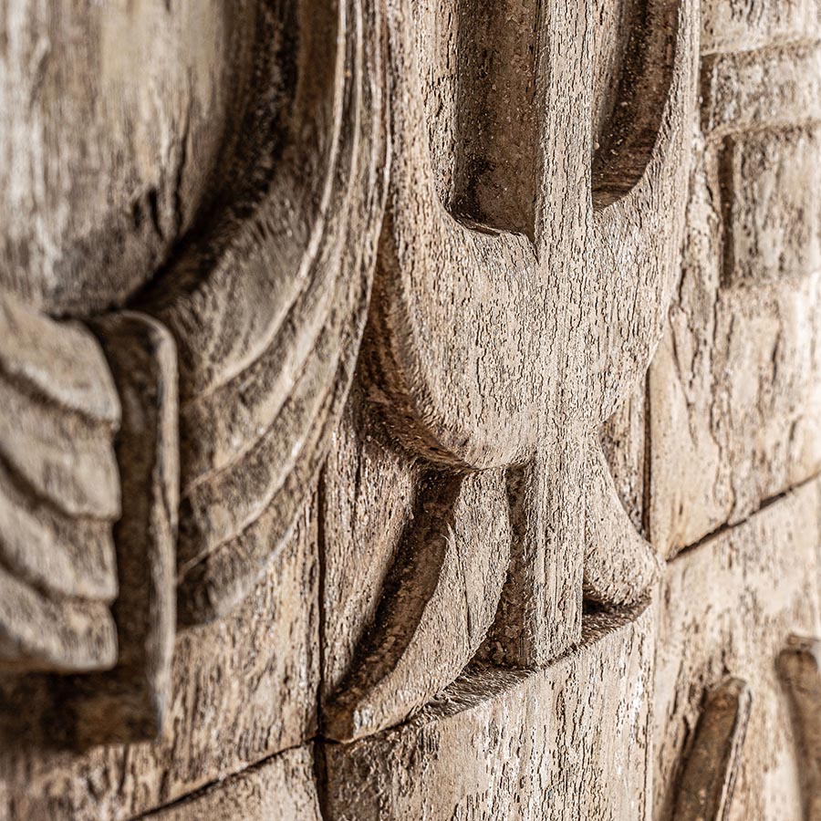Panel decorativo Askale de estilo oriental fabricado en madera de teka en color crema con acabado envejecido combinado con madera de mango.