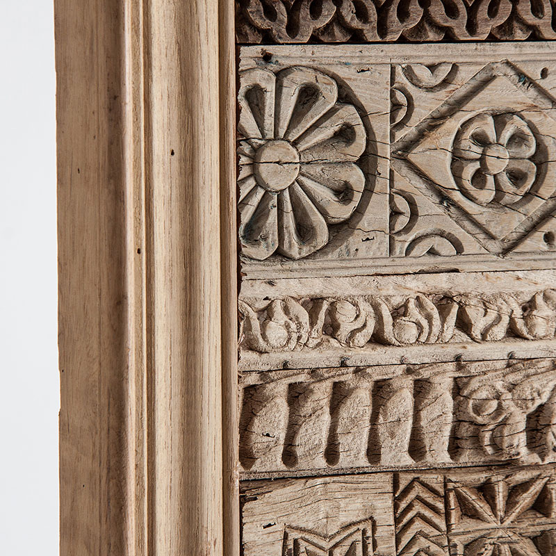 Panel decorativo Taskent de estilo étnico fabricado en madera tropical en color blanco con acabado envejecido en color natural.