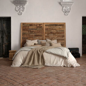 Panel decorativo Kashere de estilo étnico fabricado en madera recuperada en color marrón con acabado natural.