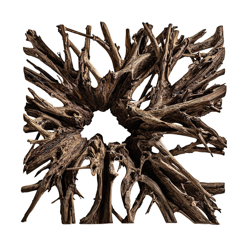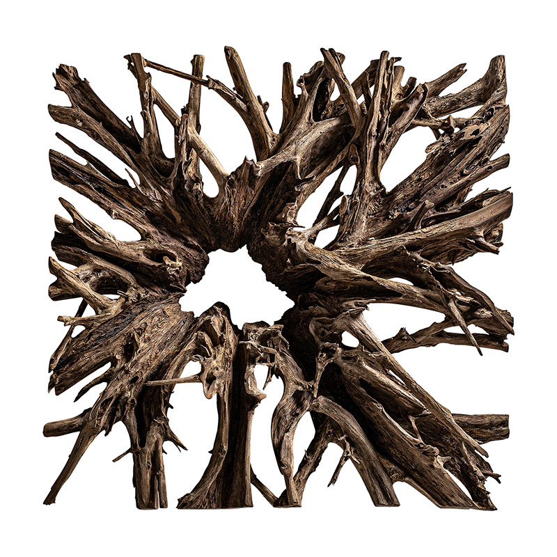 Panel decorativo ikaria de estilo étnico fabricado en madera suar en color marrón.