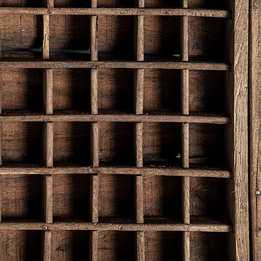 Panel decorativo Kashere de estilo étnico fabricado en madera recuperada en color marrón con acabado natural.