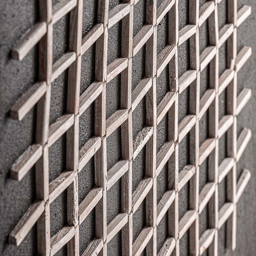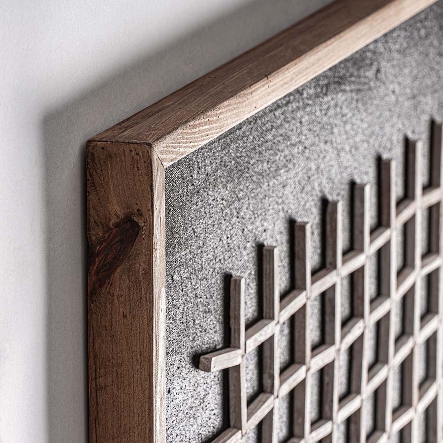 Panel decorativo siegen de estilo contemporáneo fabricado en madera de pino reciclado en color tonos oscuros.