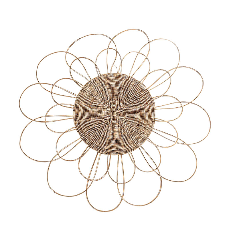 Panel decorativo de estilo boho fabricado en ratán en color marrón.