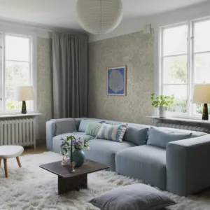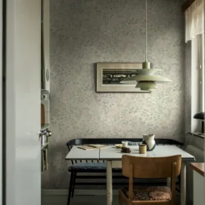 Flores sencillas y estilizadas se extienden por las paredes en este denso estampado floral, creando un ambiente sereno ideal para relajarse y entretenerse.
