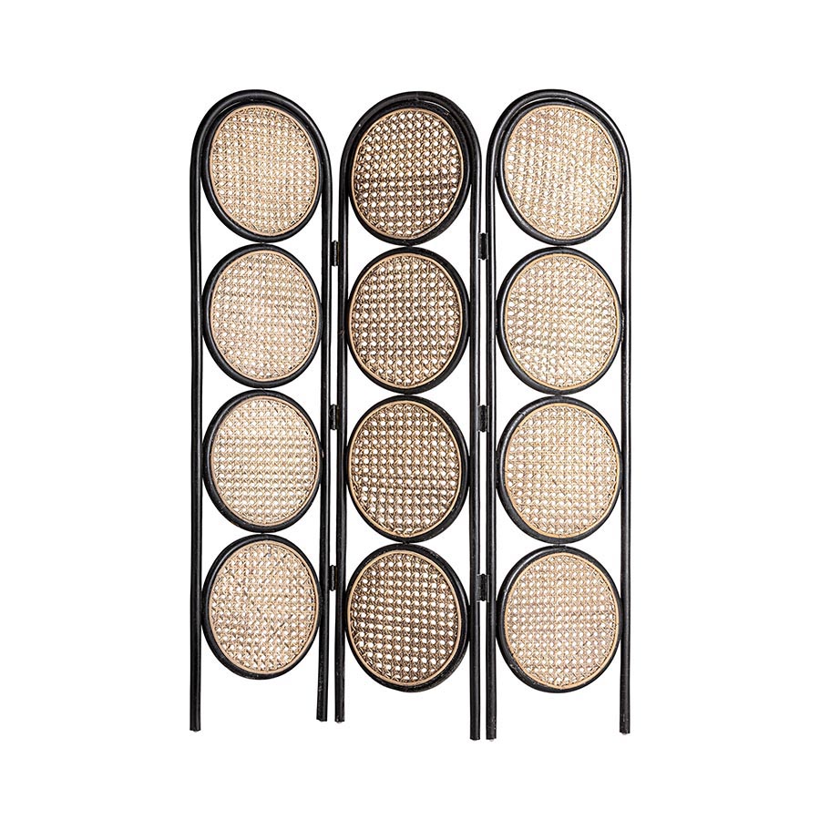 Parabán darois de estilo contemporáneo fabricado en ratán en color negro en color natural. Producto plegable.