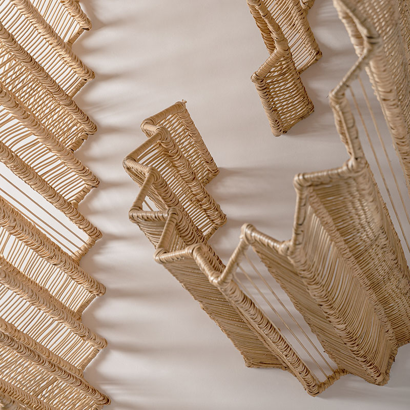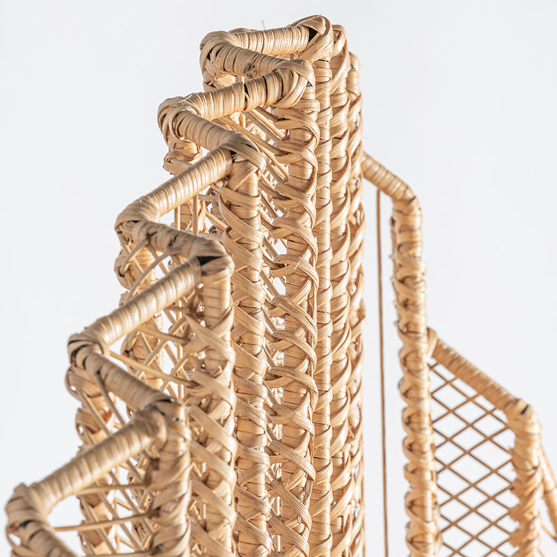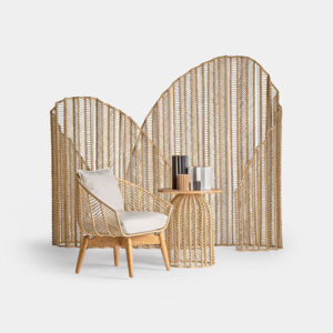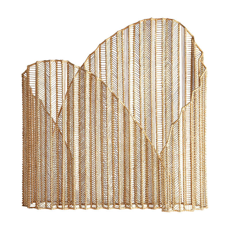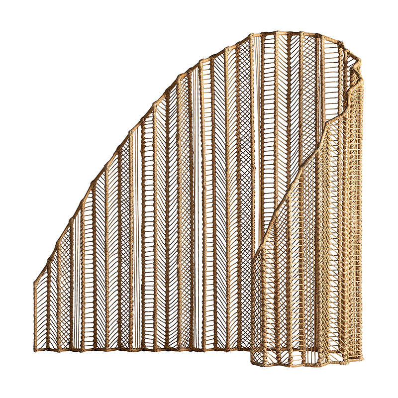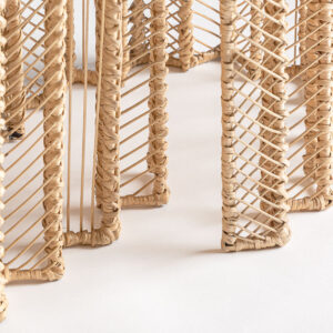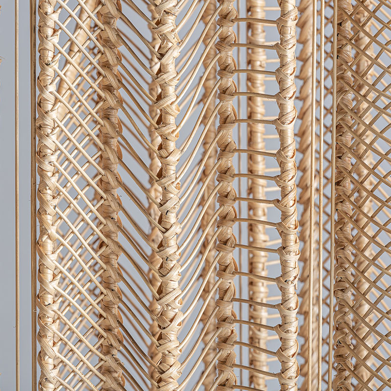 Parabán j/2 plissé rattan de estilo nórdico, fabricado en ratán en color marrón, combinado con hierro. Producto desmontable.