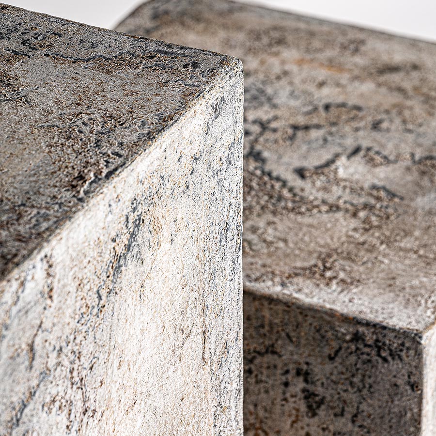 Peana j 2 Arvit de estilo industrial fabricado en terracota en color tonos neutros con acabado patina. Producto apilable.