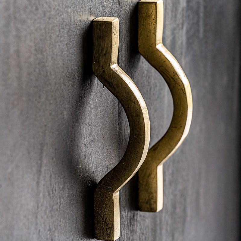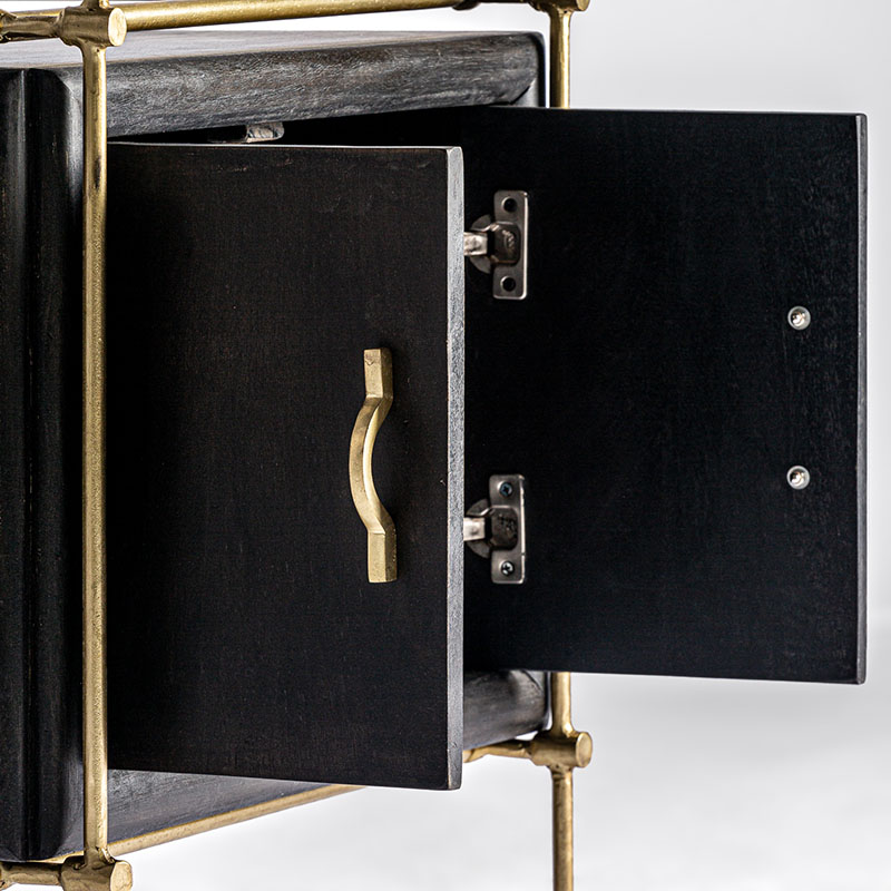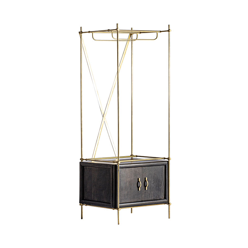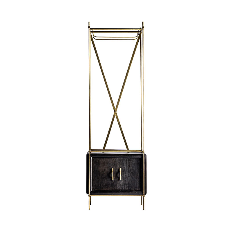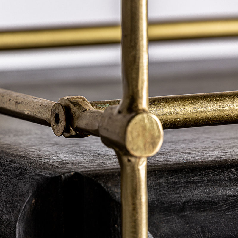 Percha rectangular danta, de estilo contemporáneo. Fabricado en madera de mango, en color negro, combinado con hierro, en color oro.
