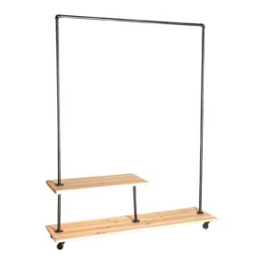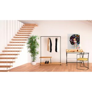 Con una estructura metálica combinada con la calidez de la madera de abeto, el perchero Gayles llega para ambientar tus espacios más minimalistas. Inspirado en el estilo industrial, está formado por una estructura diáfana que sujeta dos baldas de diferentes tamaños para poder apoyar la ropa, además de la barra superior de metal que funciona como percha. Se trata de una pieza funcional y versátil que se adapta a cualquier tipo de habitación. Tiene una medida de 130x40x171 cm.