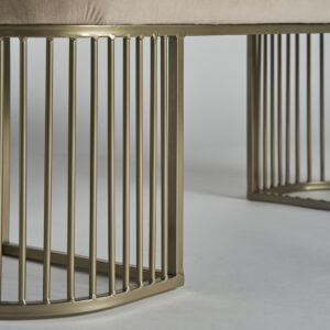 PIE DE CAMA CURNO, EN COLOR BEIGE, DE ESTILO ART DECO. FABRICADO EN TERCIOPELO, COMBINADO CON ACERO Y ESPUMA.