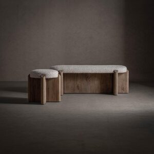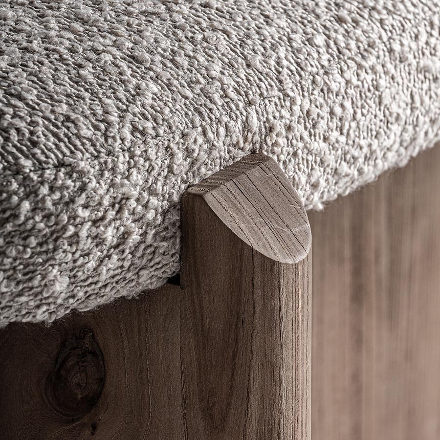 Pie de cama wangen de estilo contemporáneo fabricado en madera de mango en color marrón combinado con lino y espuma.