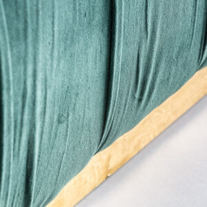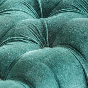 Pie de cama lignitz de estilo art deco. Fabricado en madera de mango en color verde combinado con terciopelo en color oro y hierro. Relleno espuma.