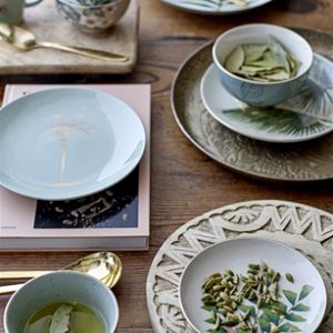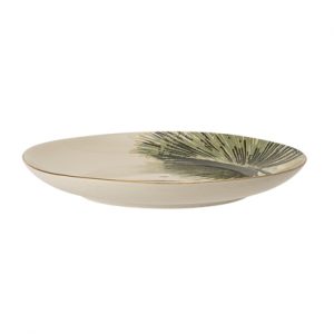 PLATO DE GRES DE 20 CM EN COLOR BEIGE Y HOJA VERDE