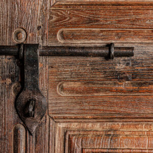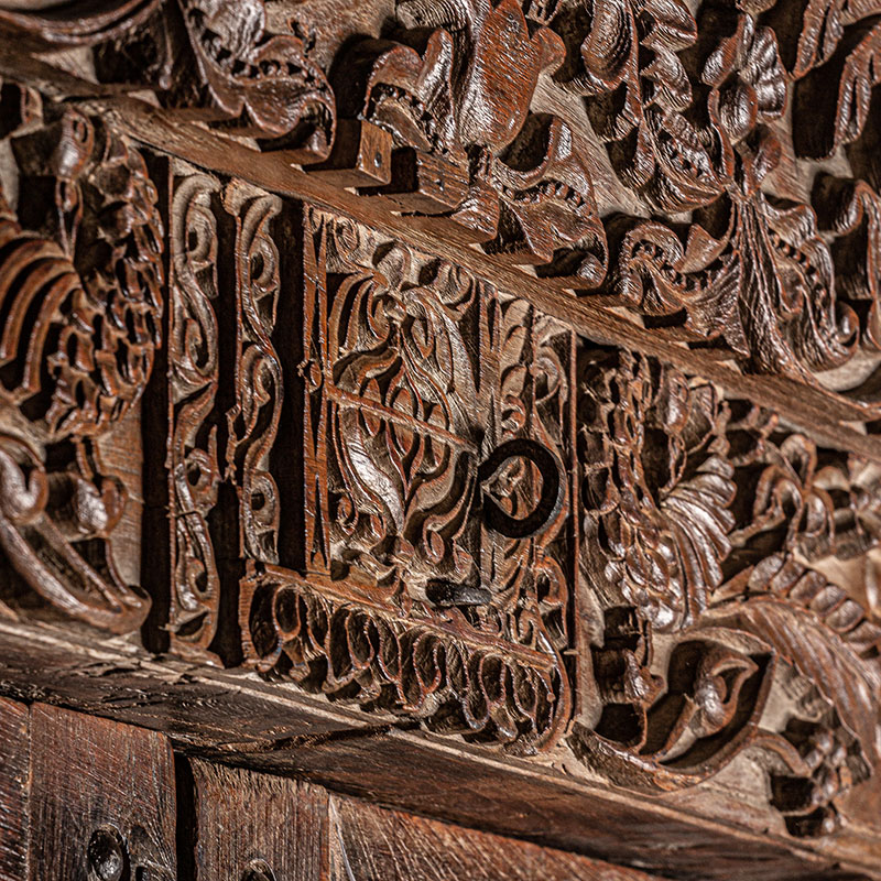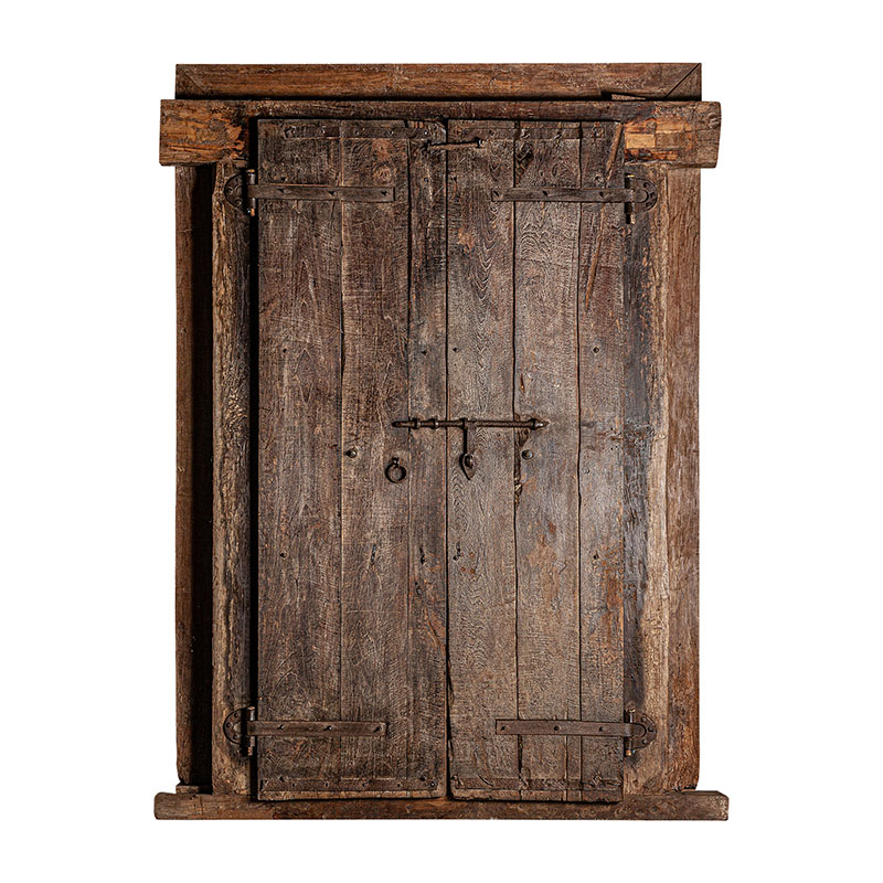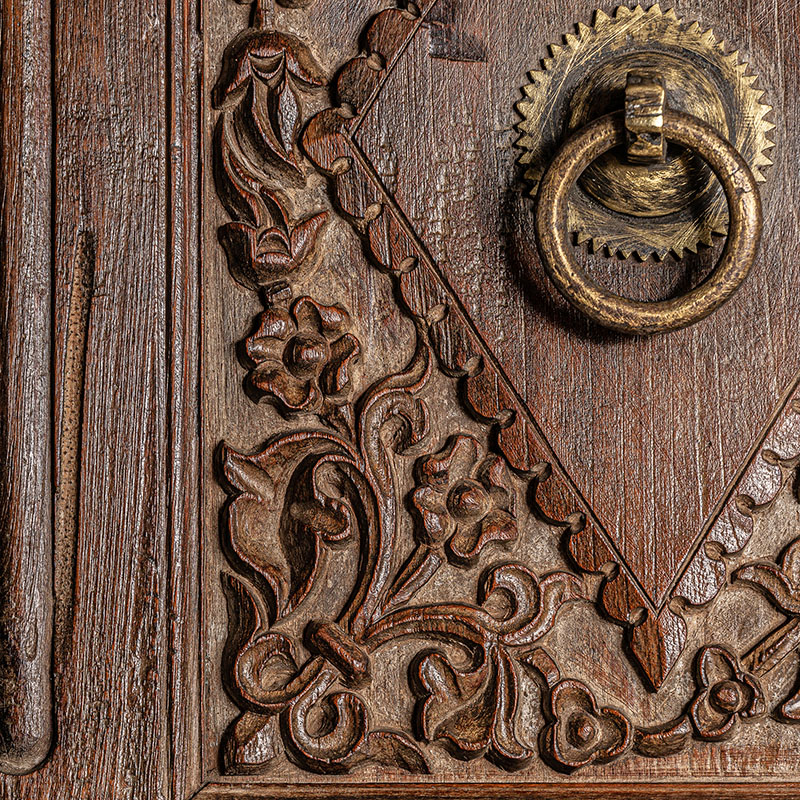 Puerta kelie, en color marrón envejecido, de estilo oriental. Fabricado en madera de mango. Producto desmontable.