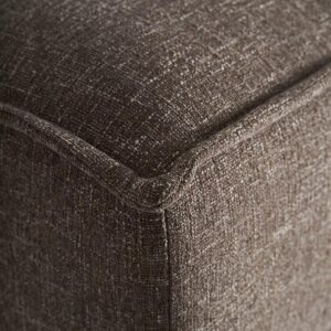 Puff Aspach de estilo contemporáneo fabricado en poliéster en color marrón con acabado jaspeado combinado con madera de pino en color marrón. Compatible con: 36359 58.