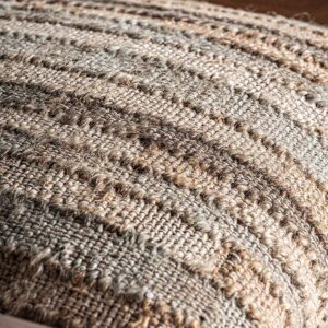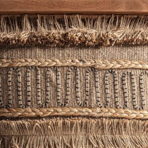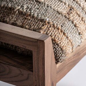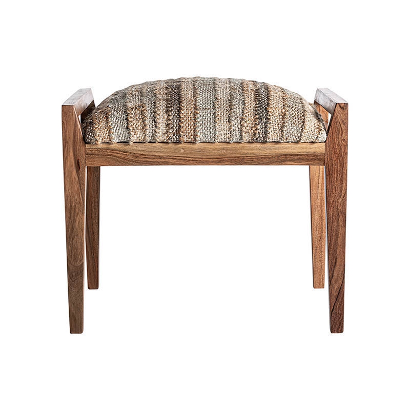 Reposapiés clarke de estilo boho fabricado en madera de mango en color marrón claro con acabado natural combinado con algodón en color tonos en marrón y yute en color beige.