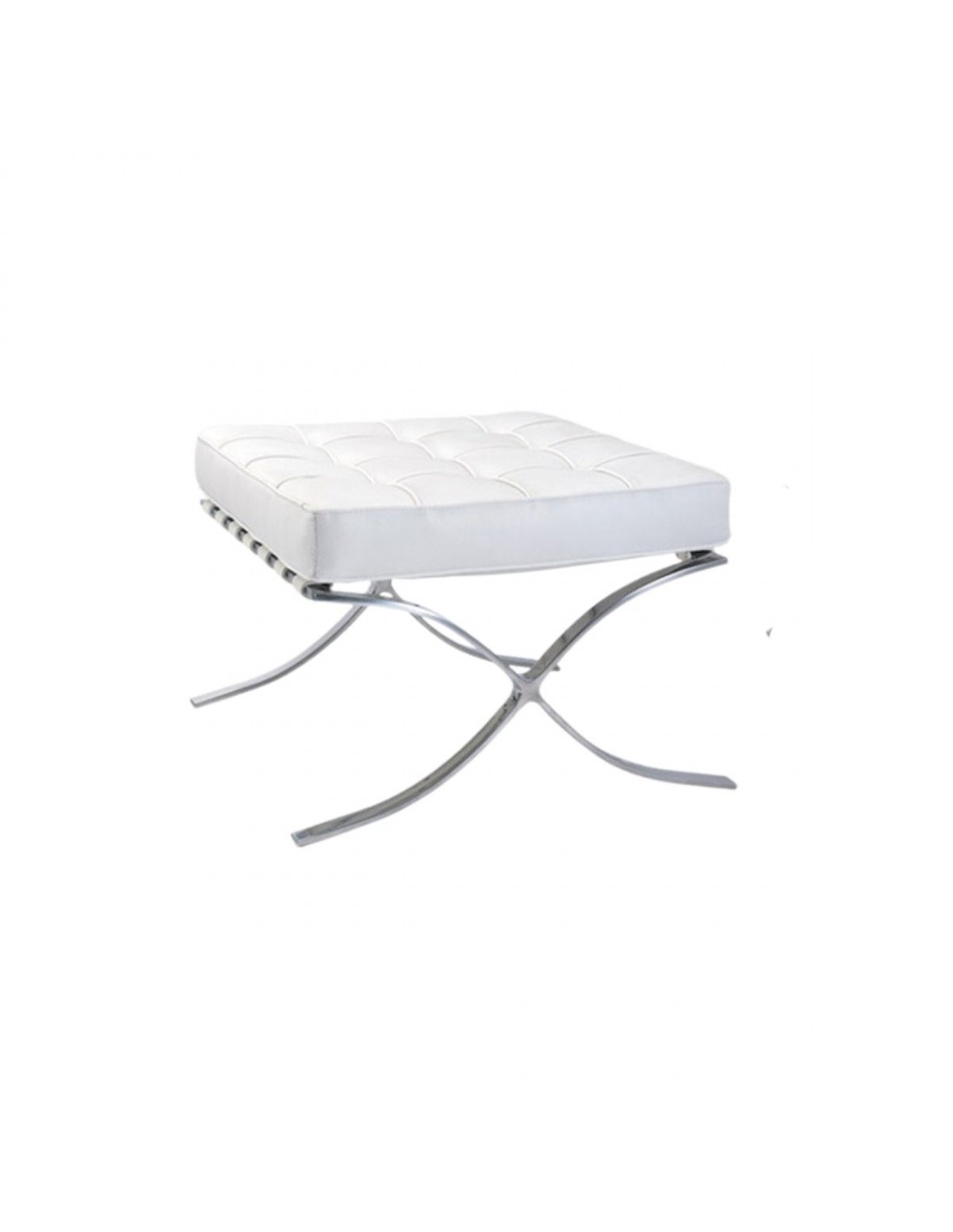 Reposapies de polipiel blanca con patas de acero y asiento con capitoné.