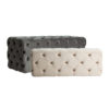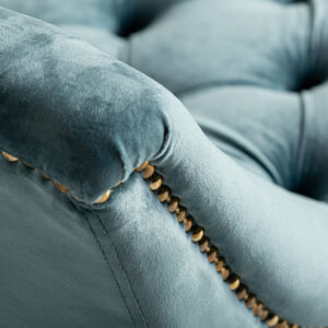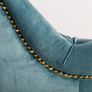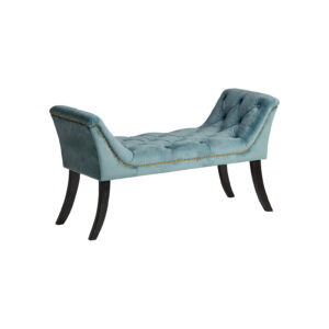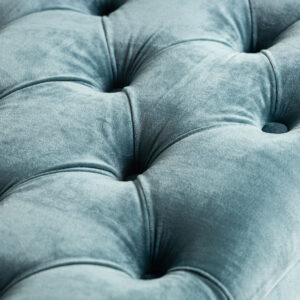 REPOSAPIÉS ERMELO, EN COLOR AZUL, DE ESTILO ART DECO. FABRICADO EN TERCIOPELO, COMBINADO CON MADERA DE PINO Y ESPUMA.