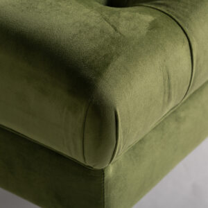 REPOSAPIÉS HAREN, EN COLOR VERDE, DE ESTILO ART DECO. FABRICADO EN TERCIOPELO, COMBINADO CON MADERA DE PINO Y ESPUMA. PRODUCTO DESMONTABLE.