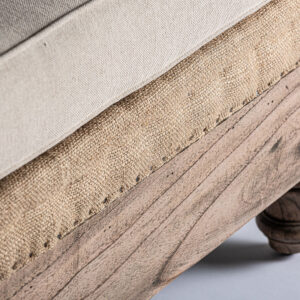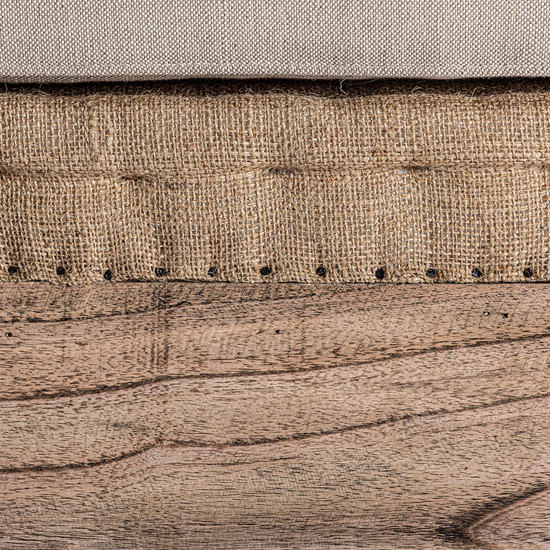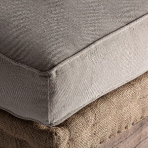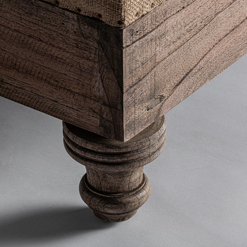 Reposapiés retz de estilo provenzal fabricado en madera de mango en color crema combinado con algodón. Producto desenfundable.