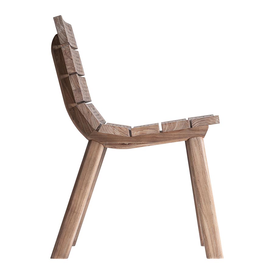 Silla Jacquard de estilo contemporáneo fabricado en madera de olmo en color marrón.