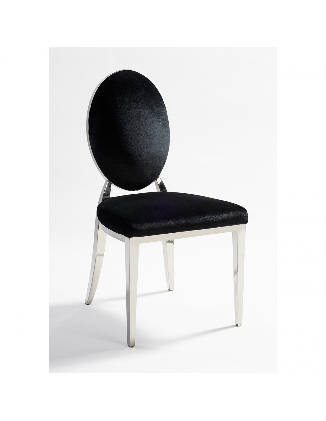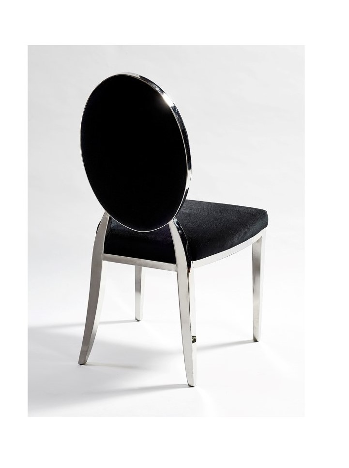 Si por algo predomina esta silla es por su elegancia y estilo mediterráneo. Esta silla iluminará tu ambiente de una manera lujosa y actual. Silla de terciopelo de color negro con base de acero cromado. El contorno del respaldo y las patas son de acero, perfecta combinación con el terciopelo de color negro. Además, presenta una pequeña inclinación en las patas traseras para aumentar la comodidad. Esta silla es magnífica, lo se hará hueco fácilmente en tu ambiente, ¡¡no la dejes escapar!!