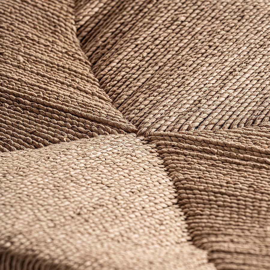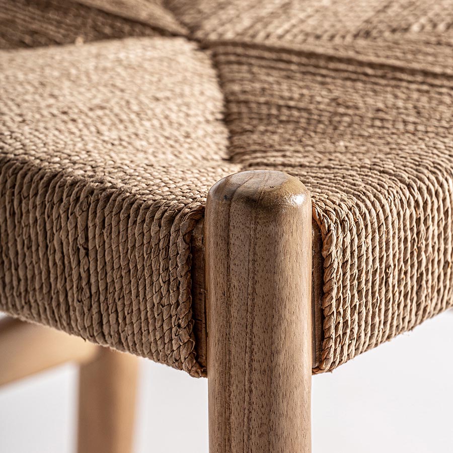 Silla Agia de estilo contemporáneo fabricado en madera de teka en color marrón claro combinado con cáñamo en color marrón claro.