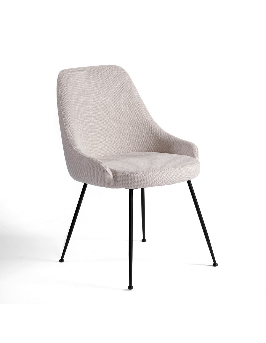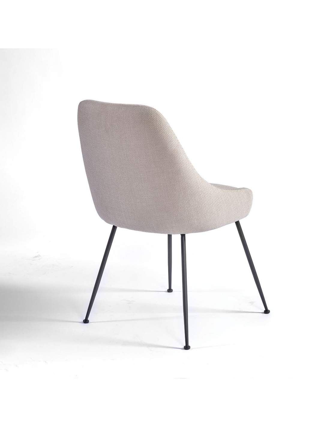 Silla de comedor tapizada gris piedra con pata de metal negra. Una silla de líneas sencillas para comedores minimalistas con un toque moderno. Altura de sentada: 49cm.