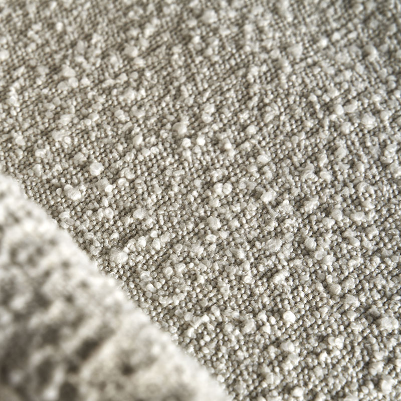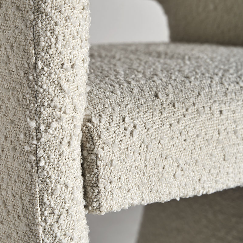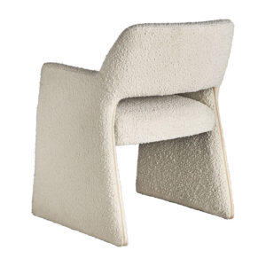 Silla alvra de estilo art deco fabricado en algodón bouclé en color blanco roto combinado con espuma y madera dm. Producto desenfundable.