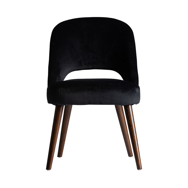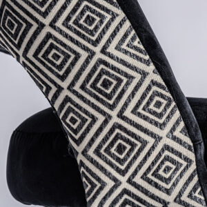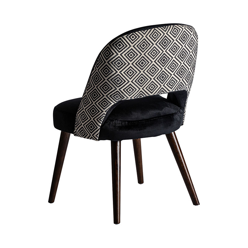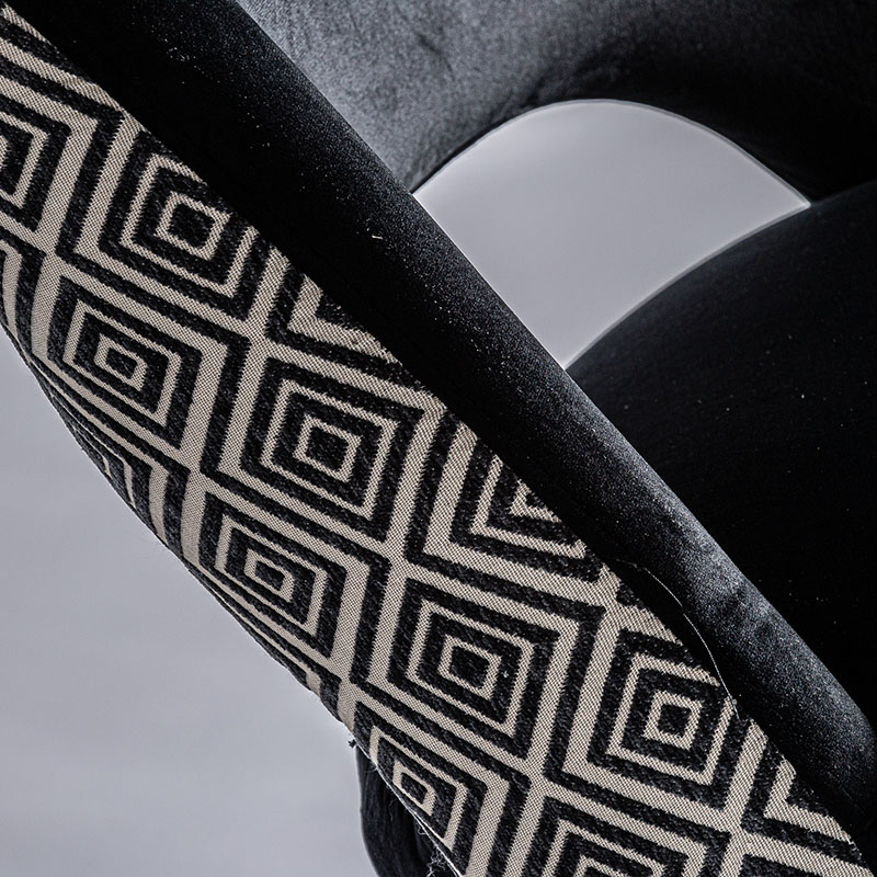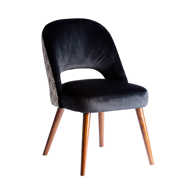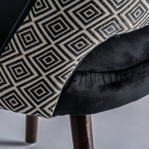 Silla arbeca, en color negro/blanco, de estilo contemporáneo. Fabricado en terciopelo, combinado con madera de pino y espuma.