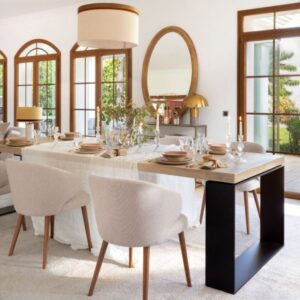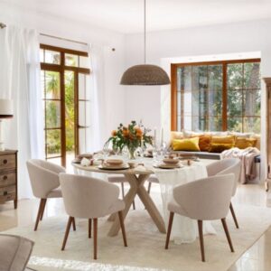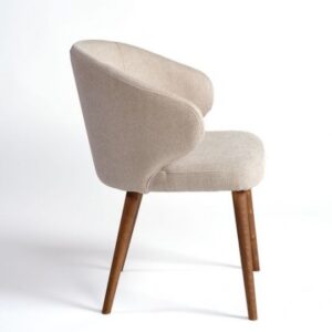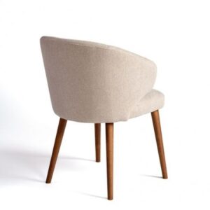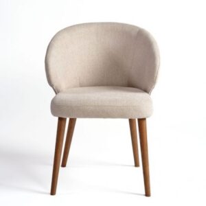 Silla de comedor tapizada en tejido beige piedra. Cuenta con patas acabadas en madera en tono natural. Color actual y luminoso. Su respaldo redondeado recoge la espalda y aporta comodidad a la pieza simulando un pequeño brazo. Un diseño ideal para dar calidez a la estancia. Combínala con otros modelos para dar un toque especial al comedor.