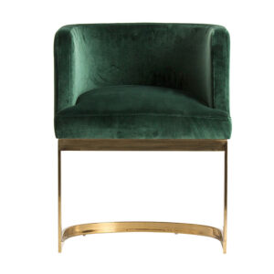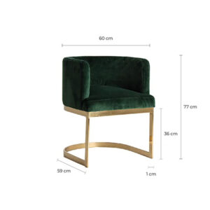 Silla Betliar de estilo contemporáneo fabricado en terciopelo en color verde combinado con madera dm y acero en color oro. Relleno: espuma.