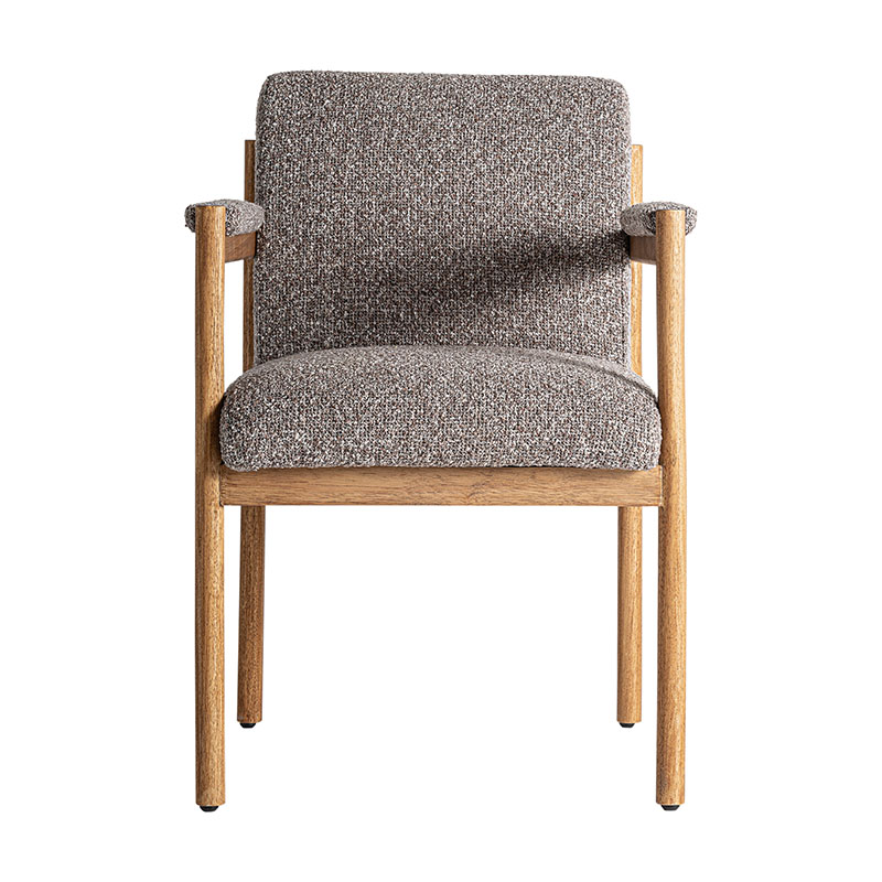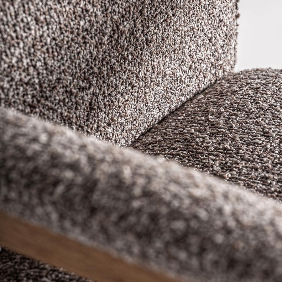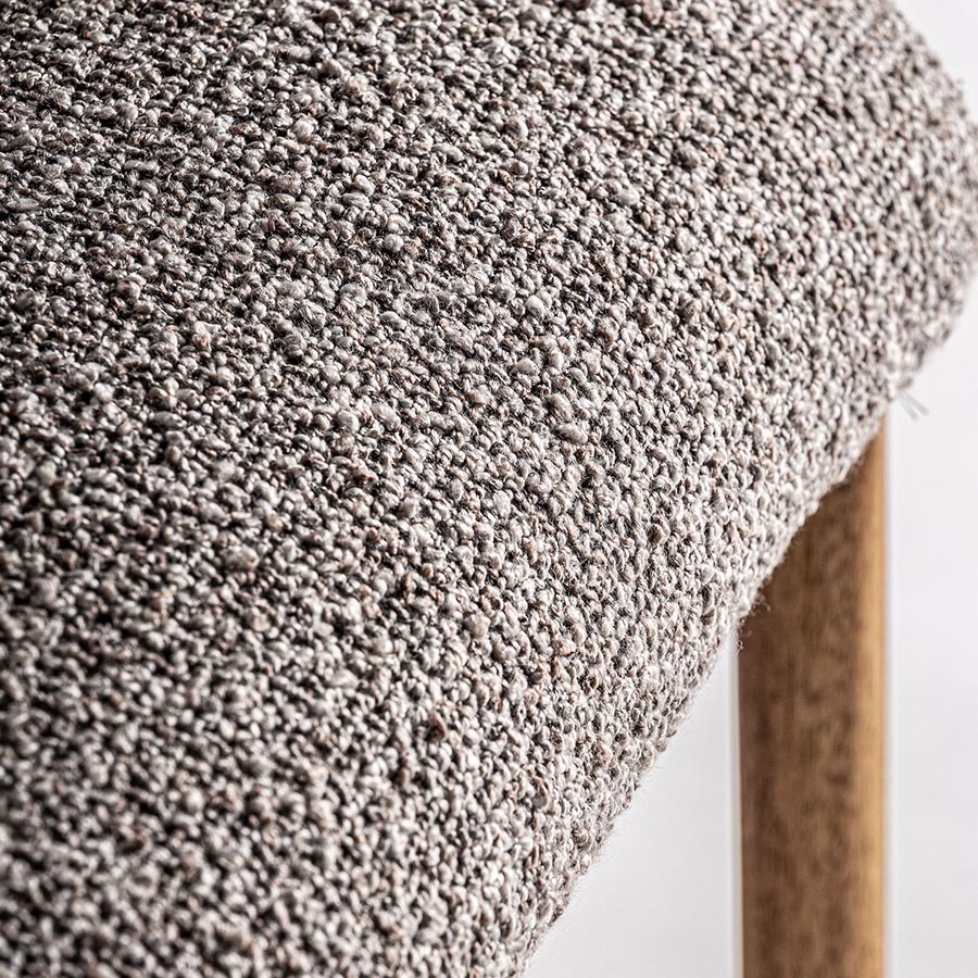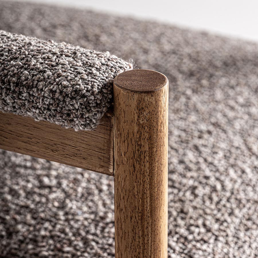 Silla bezier de estilo colonial fabricado en poliéster en color gris combinado con madera de caucho en color natural y espuma.