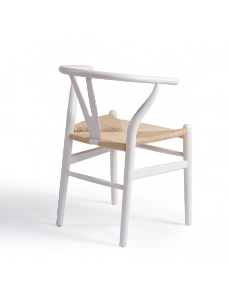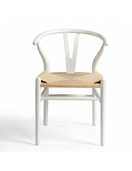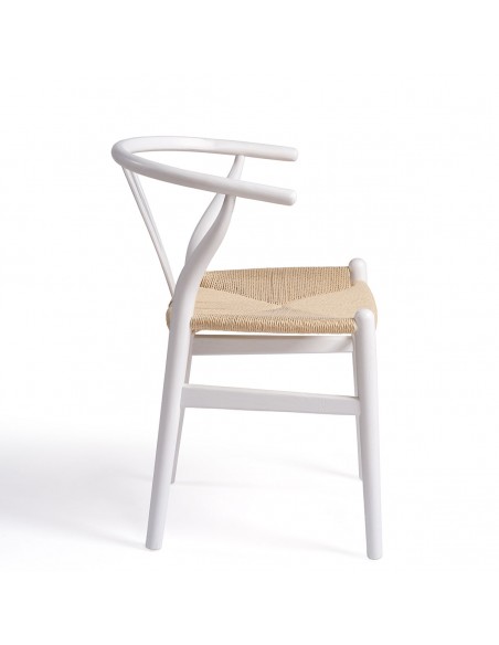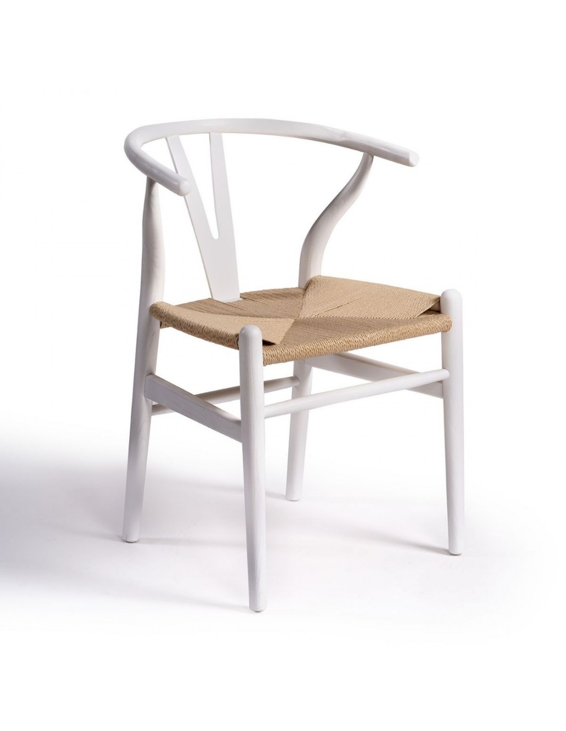 Silla de madera color blanco con asiento de cuerda natural. Una silla con diseño versión de uno de nuestros best seller XN7031 ahora renovada también en tonos blancos. Ergonómica y ligera es ideal para ambientes de comedor o cocina. Es posible combinarla en diferentes estilos de decoración y con diferentes acabados.