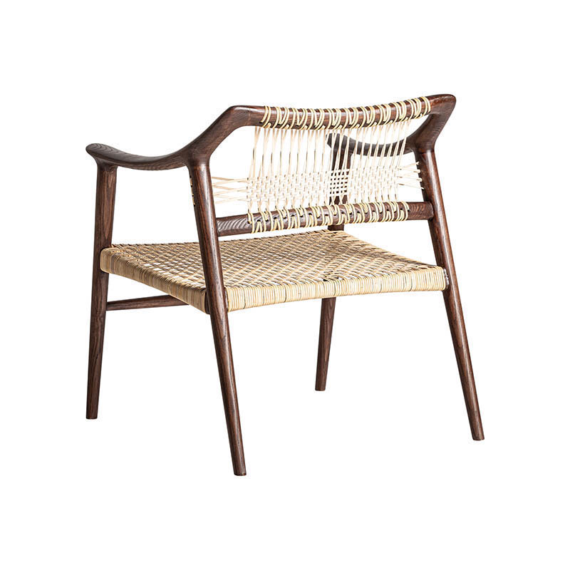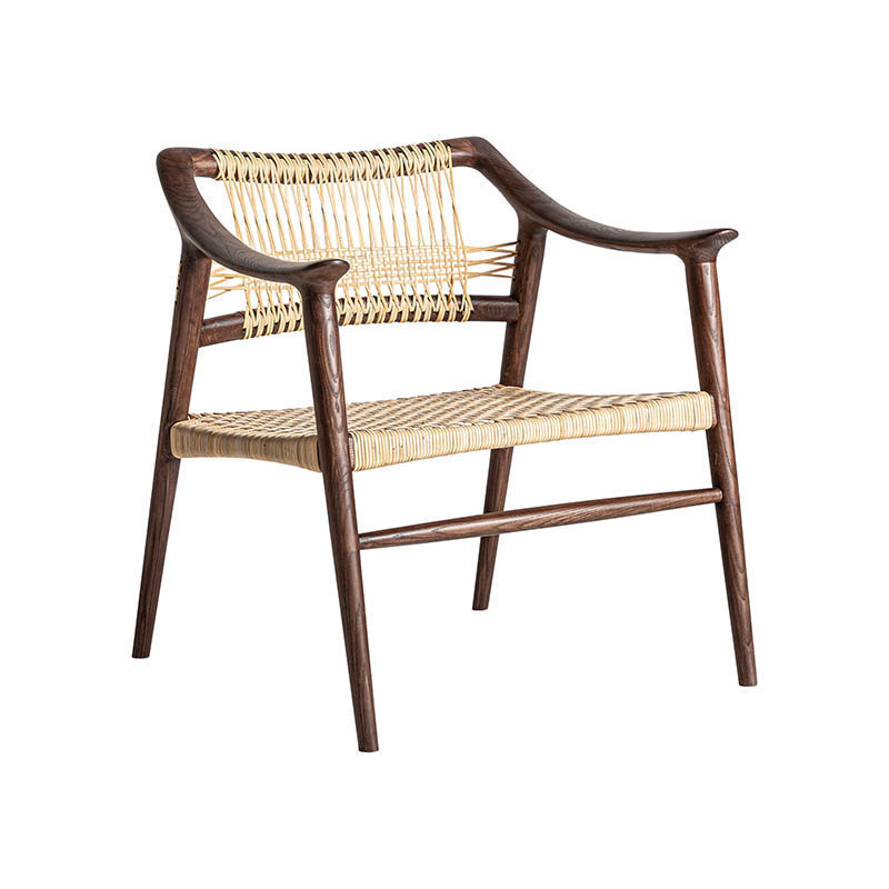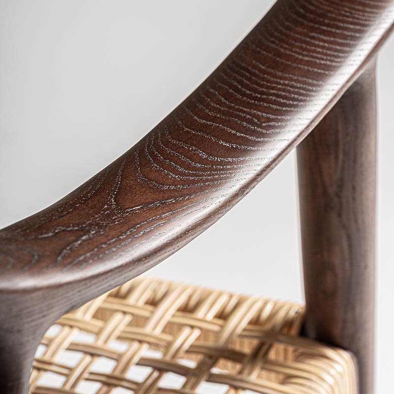 Silla buer de estilo boho fabricado en madera de fresno en color marrón combinado con ratán.