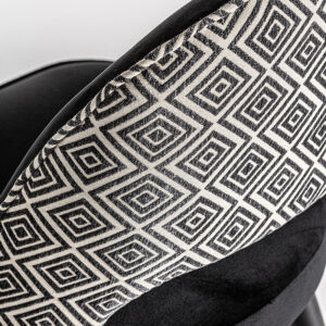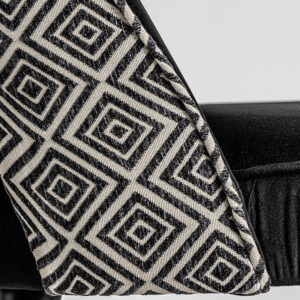 Silla calce, en color negro, de estilo contemporáneo. Fabricado en madera de pino, combinado con terciopelo y espuma. Producto desmontable.