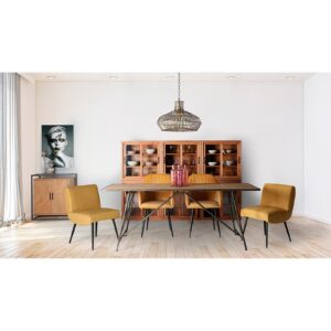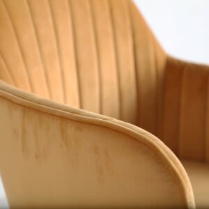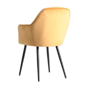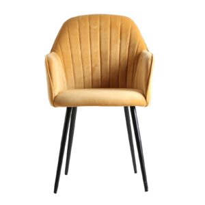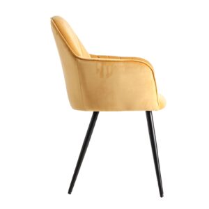 ¡Elegante y exclusiva! Así es nuestra silla de comedor o cocina Calci elaborada de acero combinado con un asiento tapizado en terciopelo de un elegante color mostaza. Debido a la suavidad de su tejido, resulta muy cómoda y suave al tacto. Se trata de una pieza exclusiva por su diseño y comodidad, inspirada en el estilo art decó. Adecuada para cualquier entorno del hogar como la sala de estar, el comedor, el ecibidor, la cocina… Medida: 54x61x85 cm.