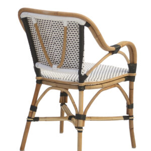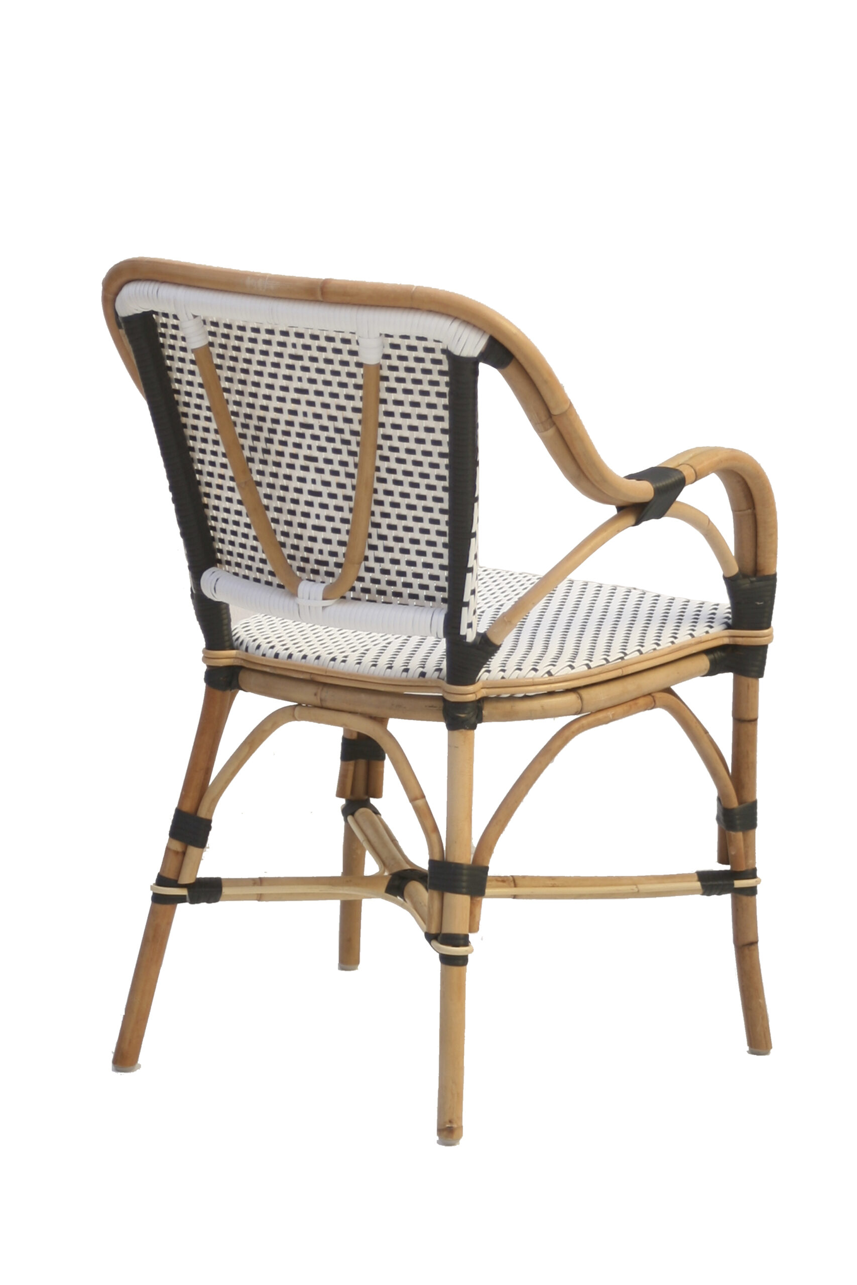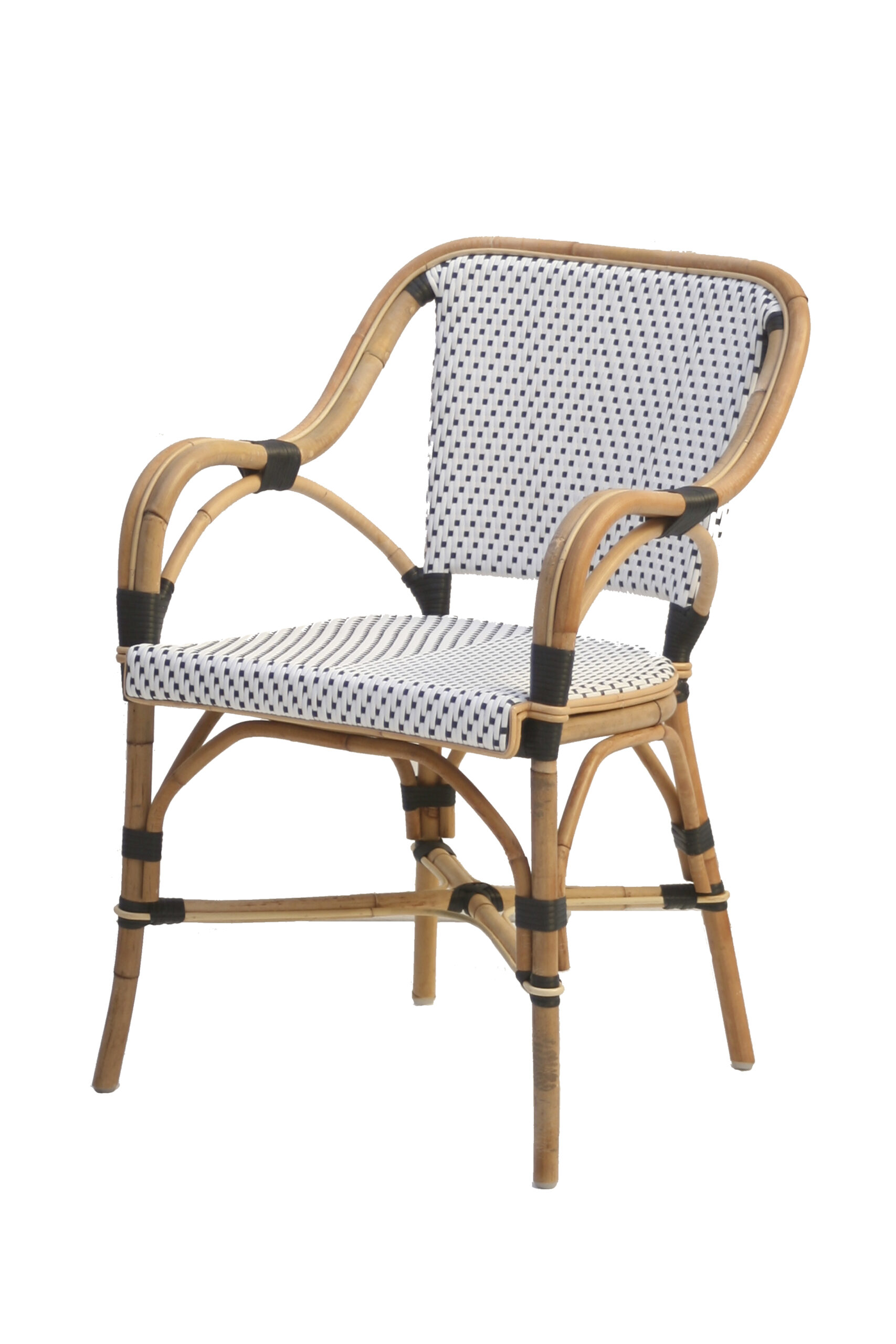 Altura asiento/Hauteur siège/Seat height: 47 cm. Altura brazos/Hauteur bras/Arms height: 55 cm. Medida del asiento/ Dimension de l’assise/ Seating size: 44×46 cm Estructura manao. Asiento y respaldo rattan sintético trenzado.
