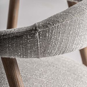 Silla Dilbeek de estilo contemporáneo fabricado en madera de haya en color marrón claro con acabado mate combinado con espuma y poliéster en color gris con acabado jaspeado.