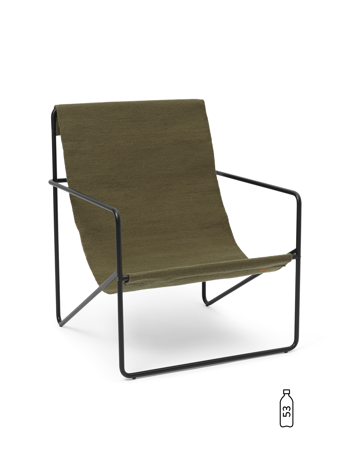 Una silla modernista con un perfil elegante, está confeccionada con un marco de acero tubular con recubrimiento en polvo y soporta un asiento textil intercambiable tejido a mano hecho enteramente de plástico reciclado posconsumo que se ha hilado en hilo PET. Adecuado tanto para uso interior como exterior, el diseño del salón invita a la relajación.
