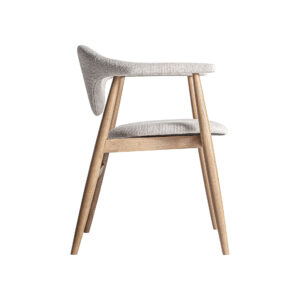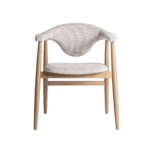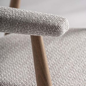 Silla Dilbeek de estilo contemporáneo fabricado en madera de haya en color marrón claro con acabado mate combinado con espuma y poliéster en color gris con acabado jaspeado.