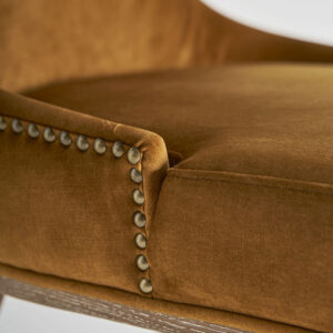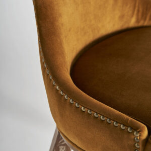 Silla dozza de estilo vintage fabricado en tela en color ocre combinado con madera abedul y espuma.