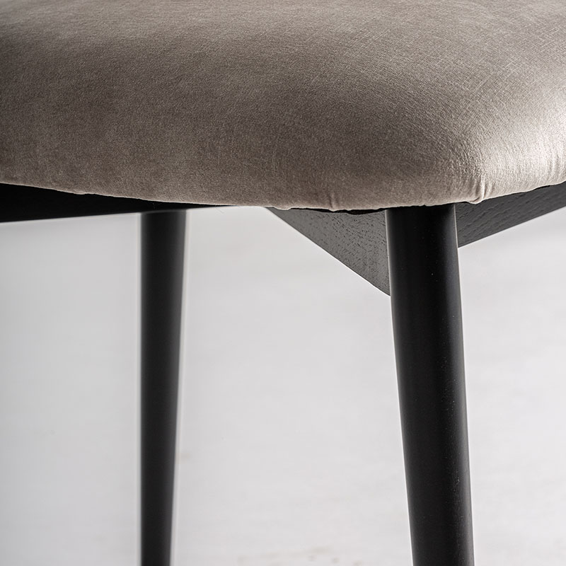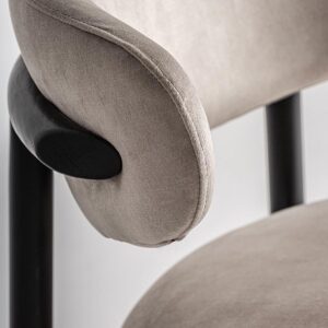 Silla Erlec de estilo art deco fabricado en poliéster en color beige combinado con madera de arce en color negro.