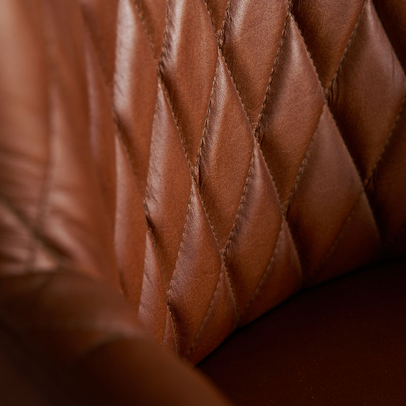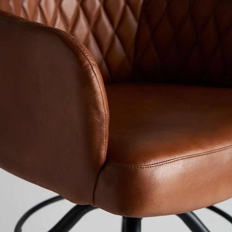 Silla escritorio tullow, de estilo vintage. Fabricado en madera de mango, en color negro, combinado con cuero, en color marrón y hierro. Producto desmontable, elevable.