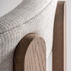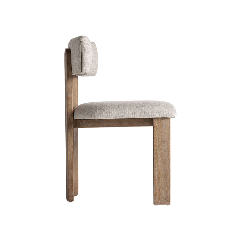 Silla Evje de estilo contemporáneo fabricado en madera de fresno en color marrón beige combinado con poliéster y espuma.
