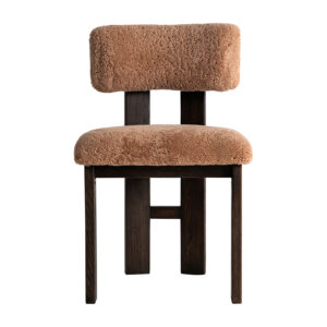 Silla Evje de estilo contemporáneo fabricado en madera de fresno en color marrón combinado con poliéster en color marrón.