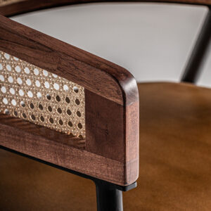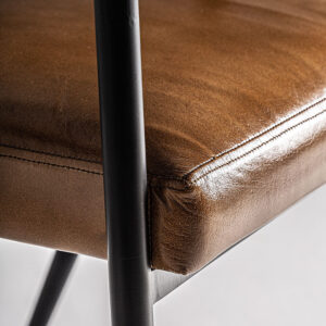 Silla gavle, en color tonos en marrón, de estilo vintage. Fabricado en madera de acacia, combinado con hierro y piel.