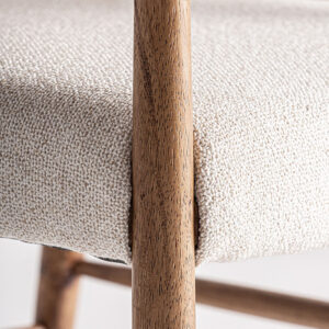 Silla imphy de estilo contemporáneo fabricado en poliéster en color blanco roto combinado con madera de caucho y enea.